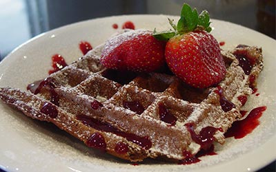 Waffles Belgas de Café con Salsa de Caramelo de Café (Coffee Belgian Waffles with Caramel Coffee Sauce)